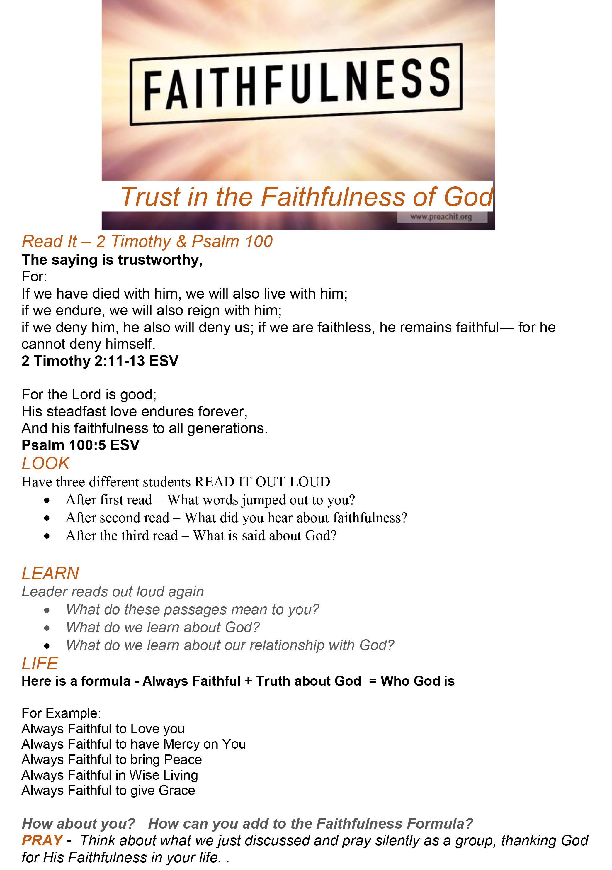 PRAY – Think about what you just wrote down in each section.